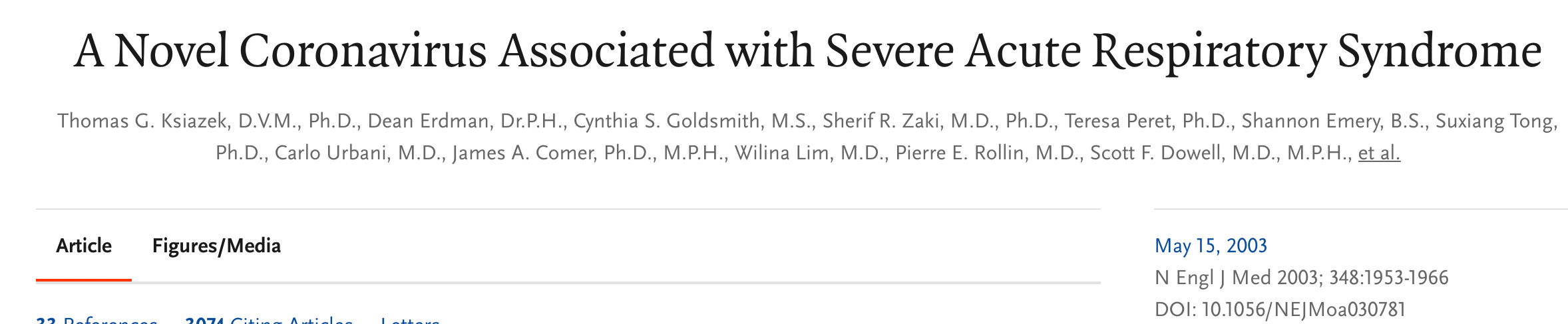 See screenshot of NEJM May 15, 2003 article below: