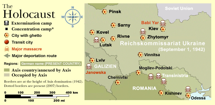 The map below is the territory under Nazi Germany occupation (1942) extending from Galicia to Kiev and Odessa.