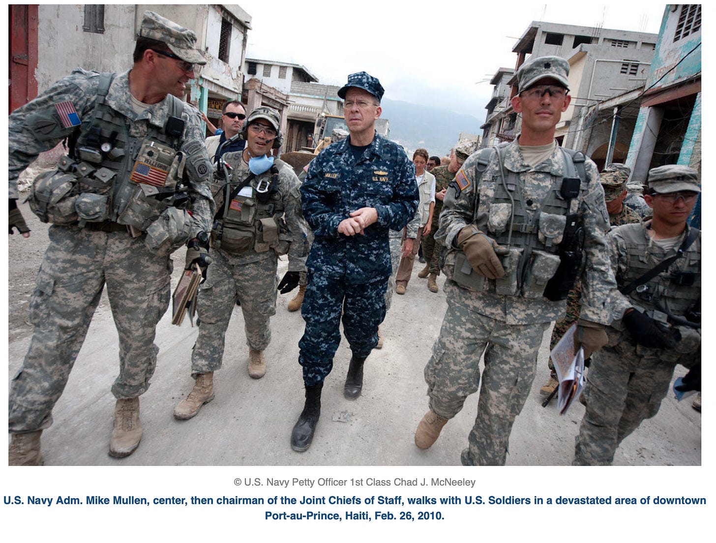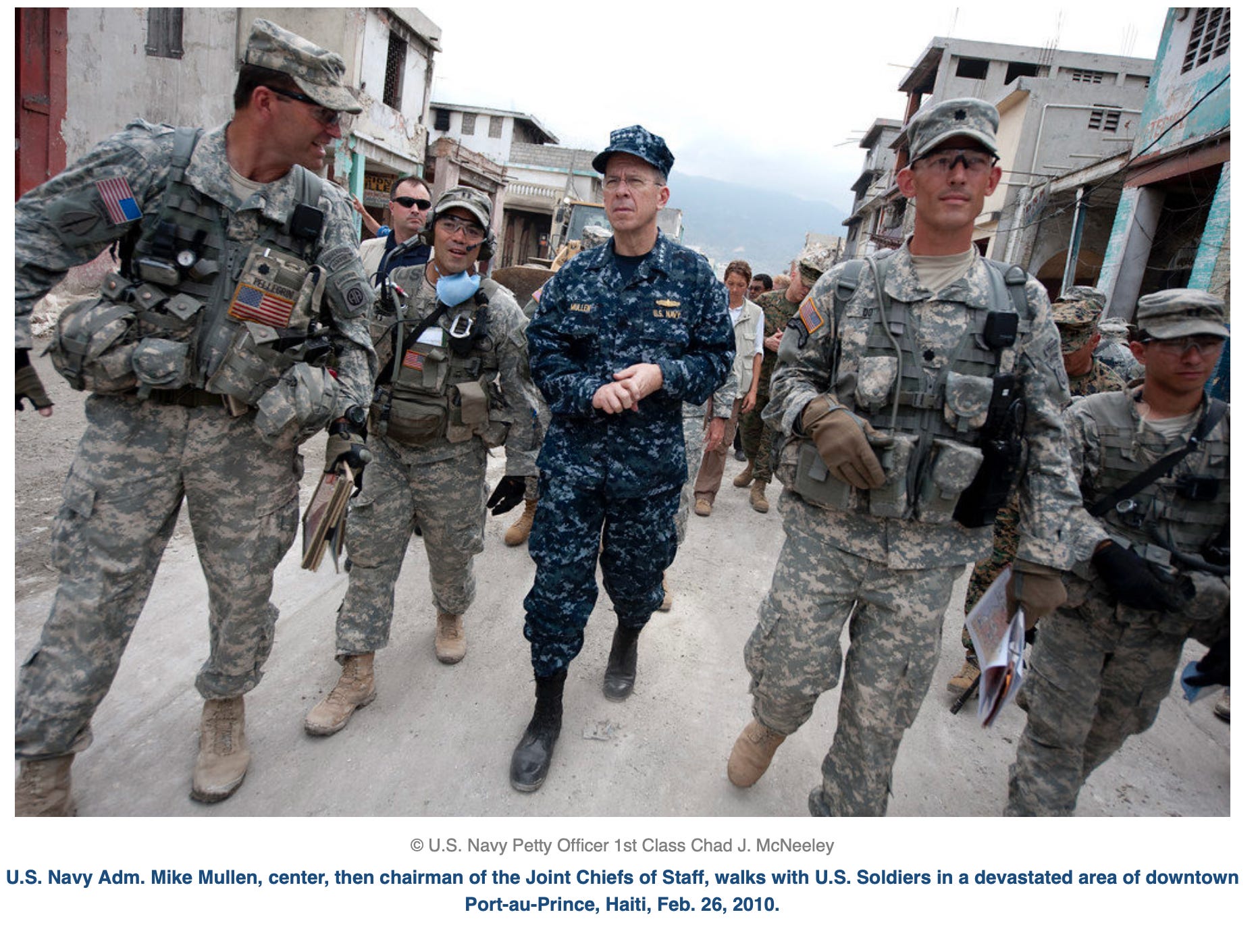 The Chairman of the Joint Chiefs of Staff Admiral Mike Mullen confirmed that the US would be sending nine to ten thousand troops to Haiti, including 2000 marines. (American Forces Press Service, January 14, 2010)