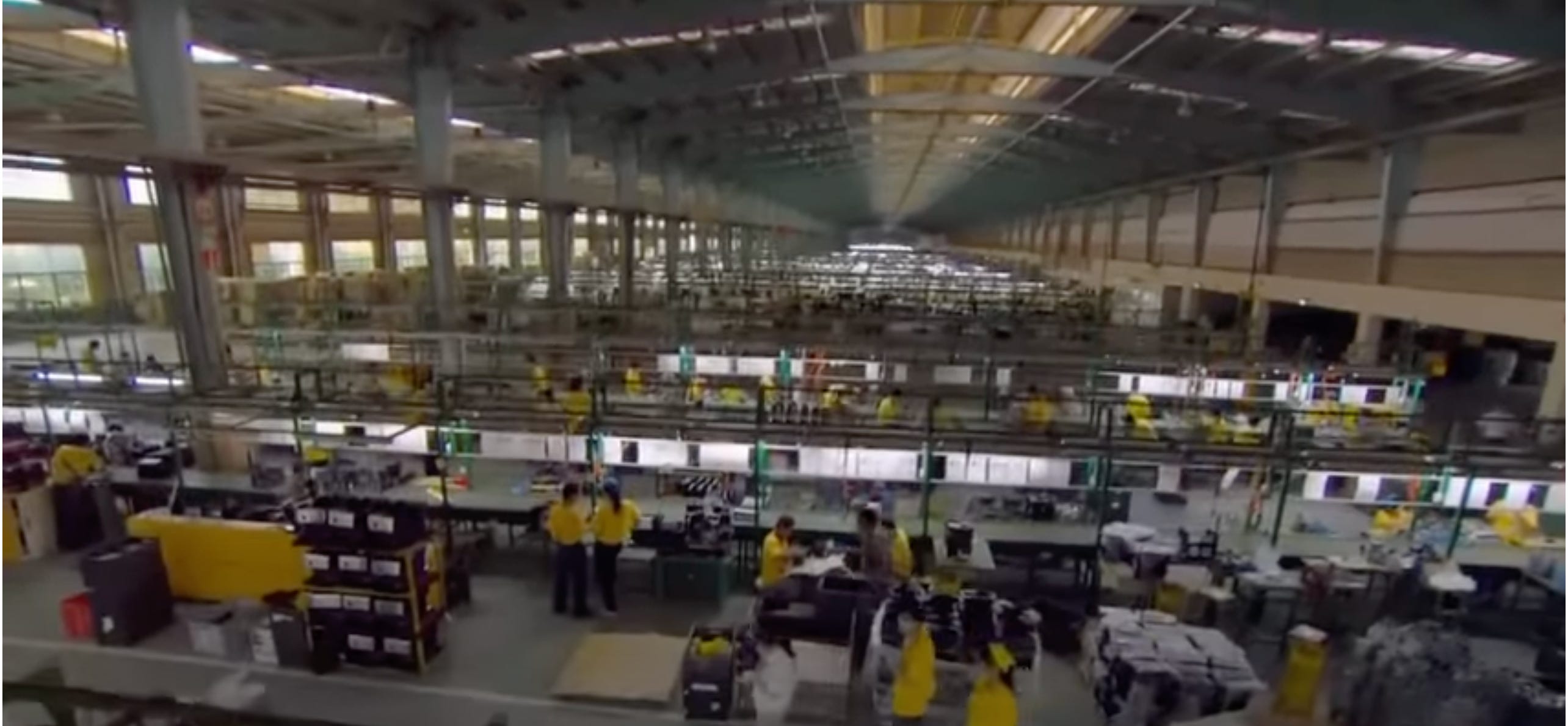 Note: the yellow uniform coincides with the color of the factory. The documentary points to an official 40 hour week and salaries (2009) varying from $90 to $300 dollars a month. These official figures do not include overtime.