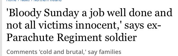 In March 2019, a former soldier “known” as “Sergeant O”, was interviewed by the BBC. “He still believes the actions by soldiers on the [Bloody Sunday] day were “a job well done”“(Belfast Herald, March 5, 2019).