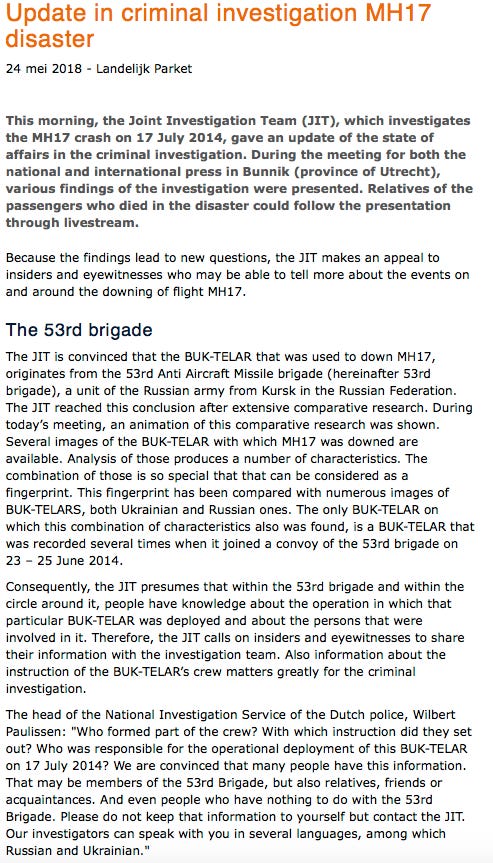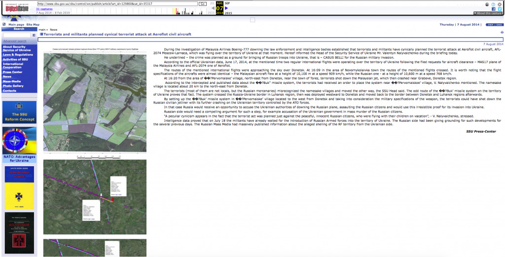 Moreover, while the SBU was feeding “evidence” to the Dutch inquiries, the SBU report (August 7, 2014) was not acknowledged or mentioned in the reports of the Dutch Safety Board and the JIT.