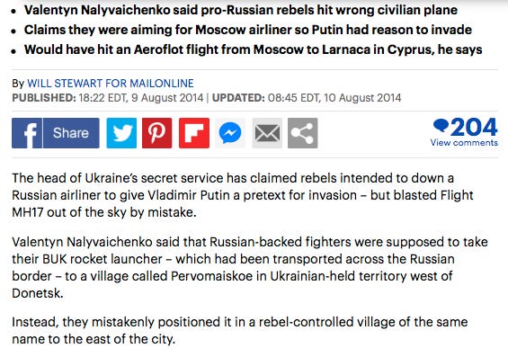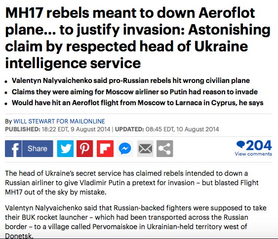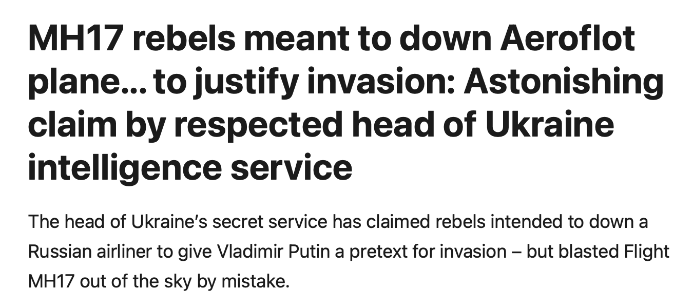 “the [Donesk] rebels were meant to down [the] Aeroflot plane… to justify the invasion [of Ukraine by Russia]” (see complete text in Annex)