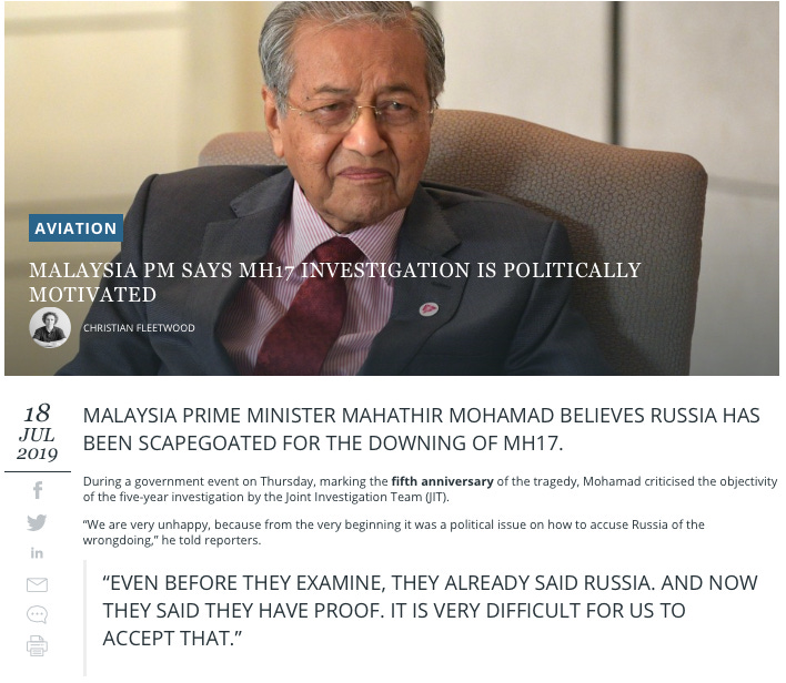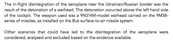 … He claimed this was a significant conclusion of Kiev’s probe into MH17’s downing. (Daily Mail, August 8, 2019, emphasis added)
