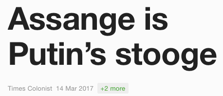 Starting in early 2017, coinciding with RussiaGate, Assange is depicted as a “Putin Stooge” working for the Kremlin, Why?