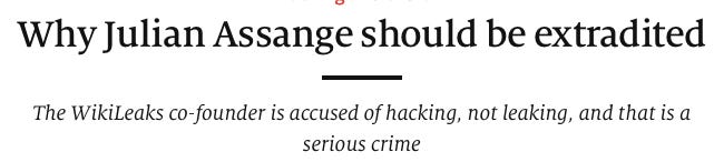 And now the US government is intent on extraditing Julian Assange from the U.K. “to face charges of violating the Espionage Act”.