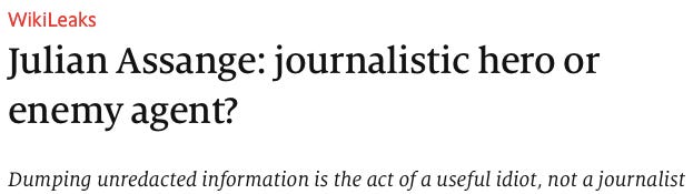 The Economist which granted Assange the New Media Award in 2008 now intimates that he is an enemy agent responsible for “information anarchy … culminating in the destabilization of American democracy”.